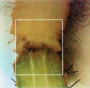 – молодые, обязательно ранее не образовывавшие ни деток, ни цветочных бутонов ареолы срезают с насколько возможно большим количеством прилегающей ткани. Боковой проводящий пучок, отходя от центрального цилиндра к ареоле, в непосредственной близости от нее дели гея на две части: основная идет в зону вегетативной активности, другая – к колючкам. Как показывают результаты многочисленных сравнительных опытов по вегетативному размножению кактусов путем прививки ареол, лучшего эффекта можно добиться, производя срез проводящего пучка до его деления;