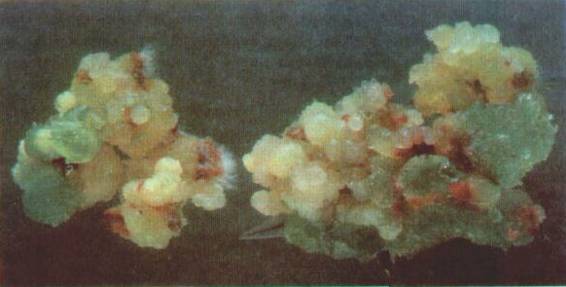 456. Группа соматических эмбрионов на кусочке каллюса через 14 месяцев субкультивирования.