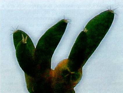 Фото 461. Ветвление соматического эмбриона Ariocarpus retusus после трехмесячного субкультивирования на безауксиновой среде Мурасиге-Скуга с добавлением 100 мл/л кокосовой воды и при 12-тича-совом световом периоде искусственного освещения 12000лк