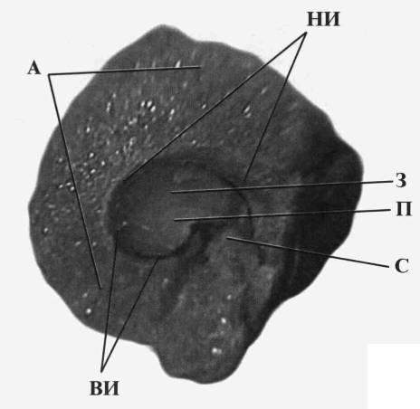 ВИ – внутренний интегумент НИ – наружный интегумент 3 – зародыш П – перисперм