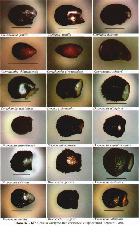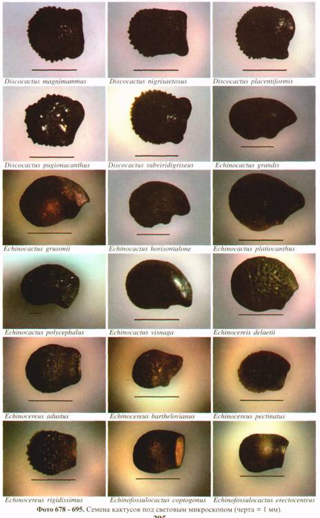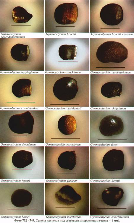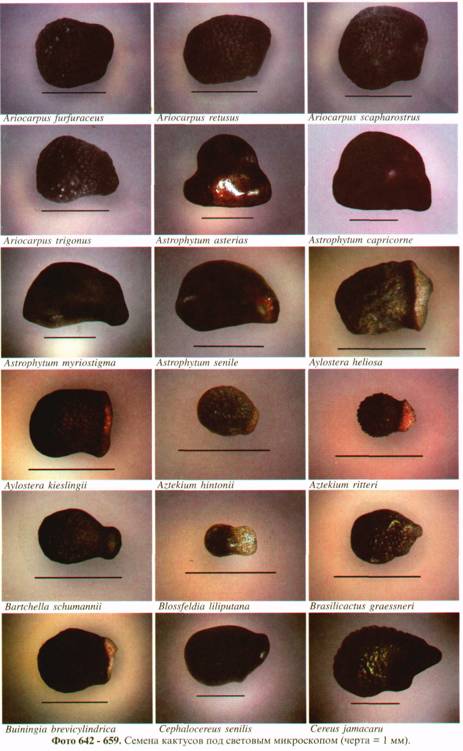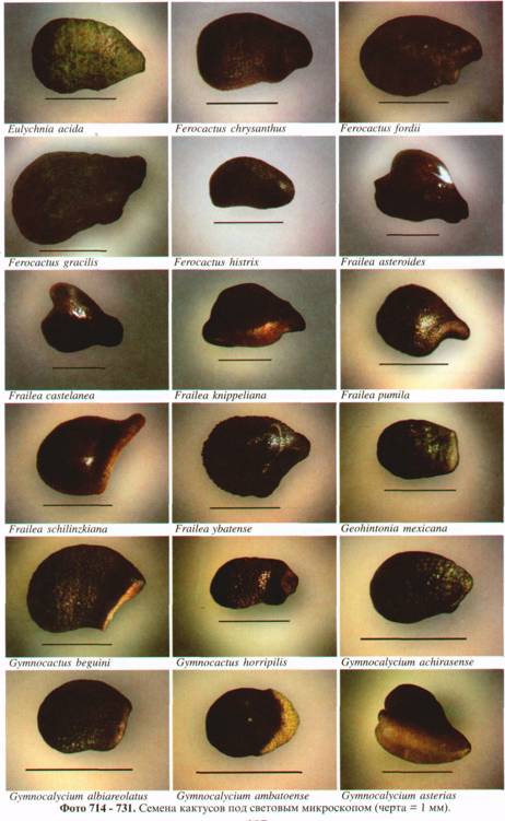 Фото 615. Пример различия в размере и форме семян у представителей рода Frailea'.