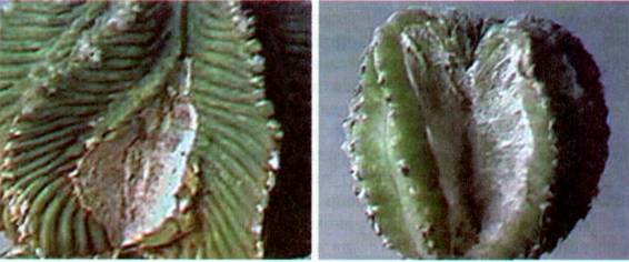 Трещины на стебле Aztekium ritteri и Discocactus horstii