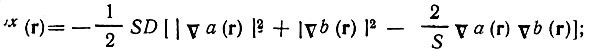 Существенным является то, что в то время как в выражение для "обменной" матрицы плотности входят произведения орбиталей а(r) и b(r), величина tx включает градиенты этих орбиталей. Если обе орбитали в области связи имеют одинаковые знаки, то можно ожидать, что величина ρx будет мала в этой области вследствие частичной компенсации членов в квадратных скобках. Для величины tx, напротив, следует ожидать большого по абсолютной величине и отрицательного значения. Действительно, в области связи одна из орбиталей убывает, в то время как другая – возрастает, и градиенты этих орбиталей имеют различные знаки. Поэтому каждый член в квадратных скобках формулы (4.110) будет положительным.