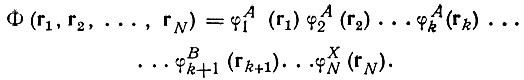Многоатомная молекула рассматривалась ими как единая многоэлектронная система. Состояния электронов в отдельных атомах (А, В, С ...) описывались одноэлектронными функциями φiA(r), φjB(r) и т. п. Многоэлектронную функцию системы при отсутствии взаимодействия между атомами можно представить в виде произведения этих одноэлектронных функций: