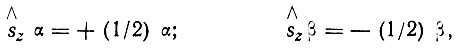– оператор проекции одноэлектронного спинового момента на ось квантования z. Так, например, для молекулы водорода, включающей два электрона, как было показано Гайтлером и Лондоном, можно построить четыре двухэлектронные спиновые функции: