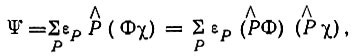 – оператор перестановок пространственных и спиновых переменных; εP = +1 для четных перестановок и (-1) – для нечетных. В результате получаем функцию