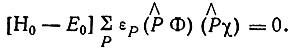 Уравнения, соответствующие первому приближению теории возмущений, получаются умножением равенства (3.27) слева на функции