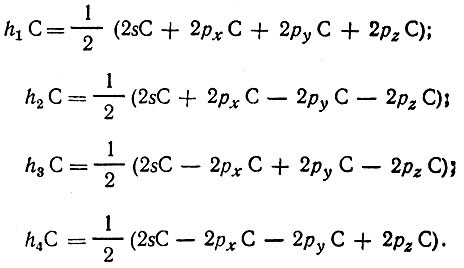 где i = 1, 2, 3, 4 и hiC – гибридные АО атома углерода, определяемые равенствами: