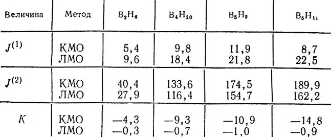 Об уменьшении при локализации МО обменной энергии электронного взаимодействия, а также об увеличении J(1) и уменьшении J(2) по сравнению со значениями, соответствующими каноническим МО, можно судить по данным табл. 4, полученным в работе [82] для гидридов бора.