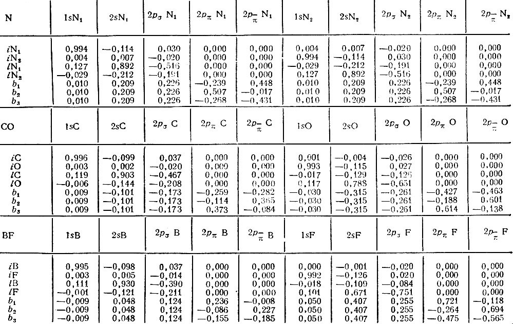 Таблица 5. Орбитали Эдмистона-Рюденберга в молекулах N2, CO и BF