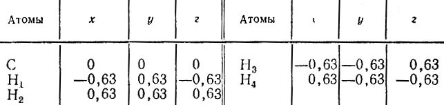 Таблица 7. Декартовы координаты атомов в молекуле метана,Ао