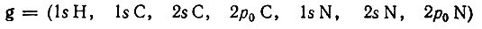 В качестве примера, иллюстрирующего формализм метода эталонной матрицы плотности, рассмотрим локализацию МО σ-типа в молекуле HCN. Предполагая, что в этой молекуле имеется одна неподеленная электронная пара, две остовные орбитали и две двухцентровые орбитали σ-типа, реализующие ковал ентные связи НС и CN, эталонную матрицу плотности записывают в виде
