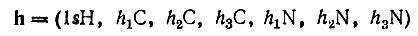 Из этих выражений видно, что в приближении строгой локализации МО гибридные АО h1C и h1N являются орбиталями электронных пар остова, h3N-ГAO представляет неподеленную электронную пару азота, остальные ГАО образуют МО σ-типа, локализованные на связях НС и CN. Степень локализации МО характеризуется среднеквадратическим отклонением матрицы плотности Рh от эталонной