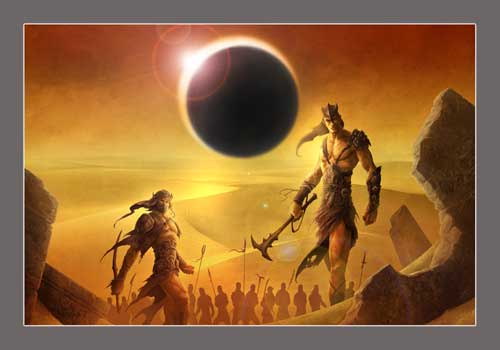 На небе, словно глубокой ночью, проступили звезды, а ветер едва не выбивал из седла. Вокруг черного пятна на месте нашего светила сумрачно сияли короткие жемчужные лучи, похожие на пряди волос. Солдаты закричали, поминая Святого Доэтерия и моля о милости, а потом начали падать со своих одичалых коней и оставались лежать на песке замертво. Лошади их в панике бежали прочь, к берегам Ханавура. Те же смельчаки, которые, невзирая на все, кинулись на кемлинов подземного города, падали у ног парламентеров, хватаясь за грудь и хрипя в агонии. Глаза их выкатывались из орбит, рты исторгали пену.