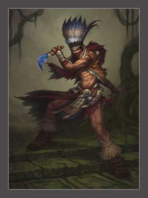 Терзаемый неутоленной яростью, мертвец гортанно взревел, мотая головой. Тысячи солнечных бликов брызнули в заросли, отраженные нелепым колпаком на размозженной голове. Он изрыгнул бы страшное ругательство, но одеревеневший язык плотным кляпом затыкал рот, наполненный ледяной тягучей слюной. Мутная зловонная жижа потекла из перекошенного рта Отнятого-у-Змея. Перед взором колыхался только пульсирующий теплый комок в центре вражеской груди. Сюда, именно сюда должен войти отточенный обсидиан! А потом он своими руками вырвет светящийся комок плоти, сломав противнику ребра, и отнесет великому Змею Мира в знак отмщения. У самого Кампана уже два дня не было живого сердца, и он с удвоенным чутьем угадывал его у других.