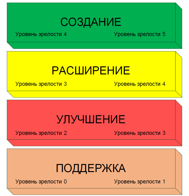 Какое количество времени требуется организации на переход от одного уровня зрелости ИТ процессов к другому? Ответ: точно определенного до минут времени нет, для каждой предприятия это индивидуальный процесс.