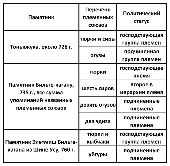 Суммируем сведения рунических памятников о преобладающих в Тюркском эле племенных союзах: