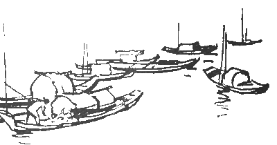 Солнце близится к горизонту. Темнеет. Наступает конец трудового дня. С наступлением темноты лодка вновь превращается в жилище. Хозяева закрывают крышу «каюты», тщательно затягивают противомоскитную сетку. Мимо плывут, стукаются о борт обломки досок, скорлупа кокосовых орехов, отбросы большого азиатского города. Семья собирается в кружок на корме у кипящего котелка с рыбной похлебкой. Черная гладь реки расцвечивается огнями с берега, на центральных улицах зажигаются огни реклам, вывесок ночных клубов, публичных домов, скромно именуемых турецкими банями и массажными. Далеко разносятся шум толпы, сирены автомобилей, джазовая музыка.