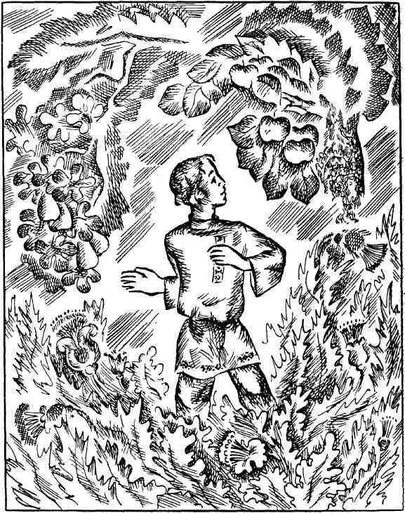 Хотел скоро обернуться, да не обернулся. Не мудрено в чужом саду яблок нарвать, домой принести и отца вылечить, но это всего лишь половина дела. Ведь небось не один его тятька в деревне от болезней страдает, раньше времени старится. Еда-то в деревне была не больно богатая: картошка вареная, паренки брюквенные и морковные, кулага из солода ржаного, алябушки пополам с мякиной. Вот и задумал парень свой сад развести, для всего народа наливчатые яблоки вырастить. Ну и не стал торопиться. Где добром, где кнутом у Лешака все, что надо было знать, выведал. Только после этого стал домой собираться: набрал яблок наливчатых полный карман и саженцев накопал.