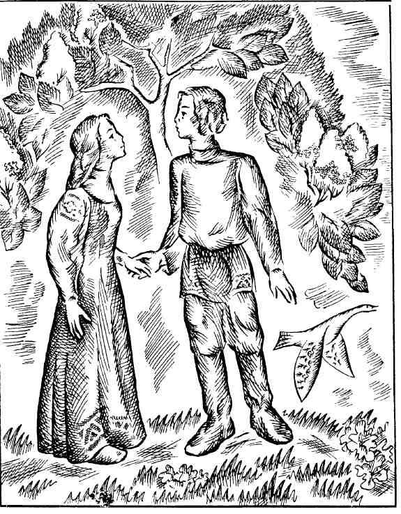 Взялись они оба за руки. Игнатко снова какие-то слова прошептал. Закачалась черемуха, полетели с нее белые лепестки, как лебяжий пух.