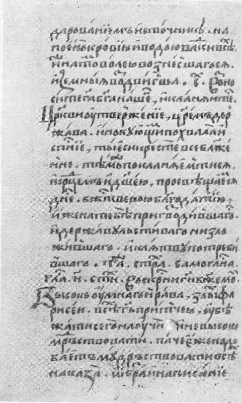 Самые ранние рукописи, дошедшие до нас из древней Руси, относятся к XI в. В основном это богослужебные книги (Остромирово евангелие 1056—1057 гг. и др.), списанные со старославянских. В обращении, кроме этого, находились и книги иного содержания. Таковы, например, Изборники Святослава 1073 и 1076 гг. Эти религиознонравоучительные сборники содержат также сведения из различных областей знания и житейского опыта. Язык старославянских книг и древнерусский были близки, поэтому наши предки могли понимать старославянский и в какой-то мере пользоваться им.