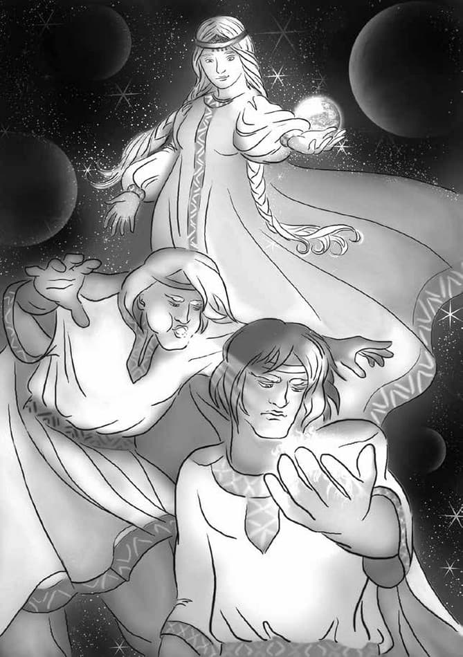 А красавица Жизнь от звезды к звезде за богатырями следом идёт. Знает она, что подрастает уже богатырь Разум, и как войдёт этот малыш в силу, ни Огонь, ни Гравитон победить его не смогут.