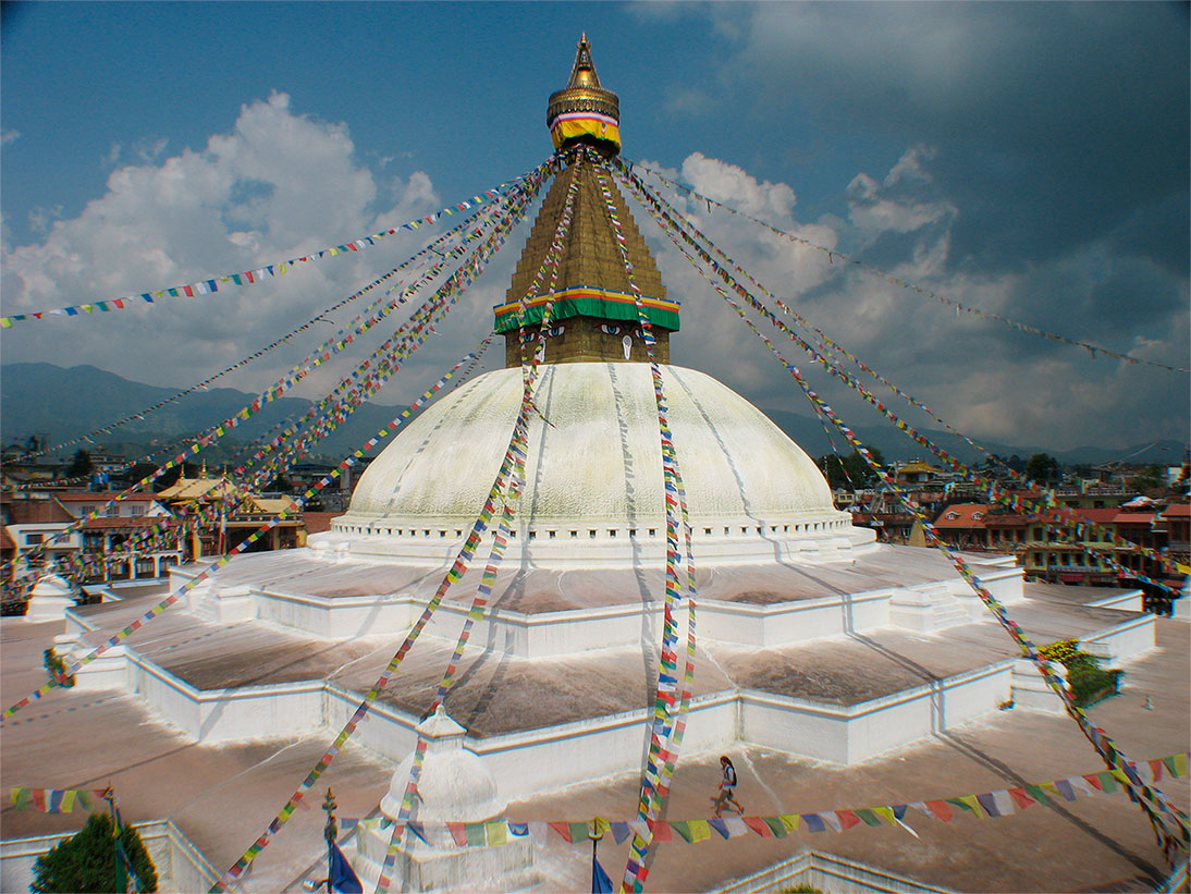 Ступа Боднатх расположена в центре комплекса из множества тибетских (ламаистских) монастырей. Стены под элементом пирамидальной формы украшены особым декором, так называемыми глазами Будды.