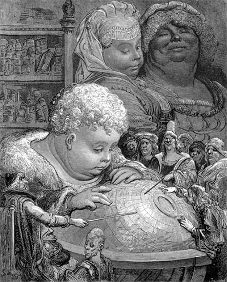 Рис. 7.3.4. Обучение Гаргантюа. Иллюстрация к роману Франсуа Рабле «Гаргантюа и Пантагрюэль». Гравюра Поля Жоннар-Паселя по рисунку Гюстава Доре. 1854 г.[265]265