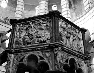 Рис. 7.3.8. Никколо Пизано при участии Арнольфо ди Камбио и Лапо ди Ричевуто. Кафедра баптистерия Сан-Джованни. 1255–1260 гг. Пиза, Италия[269]269