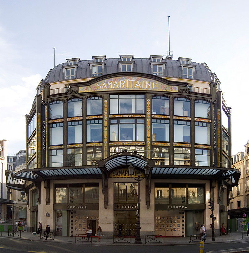Разницу между эстетическими принципами ар-нуво и ар-деко отлично демонстрируют разновременные фасады универсама «La Samaritaine» в Париже. В данном случае перед нами строгий («рациональный») вариант французского модерна.