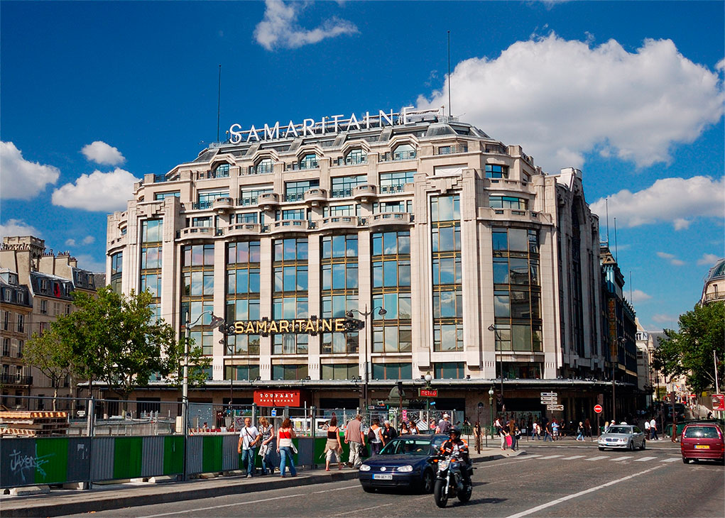 Хотя автор нового, обращенного к набережной Сены фасада магазина «La Samaritaine» стремился сохранить преемственность с архитектурой уже существовавшего здания, построенного в стиле ар-нуво, отличительные черты ар-деко здесь хорошо заметны: прежде всего, доминирование геометрии прямых линий и прямых углов; кроме того, многослойное решение плоскостей, дающее эффект пафосного порыва вперед – здание как будто «бросается» на зрителя и в окружающее пространство.