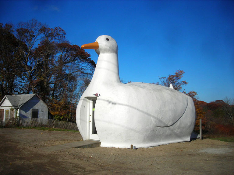 В начале 1930-х гг. владелец утиной фермы Мартин Маурер задумал построить здание магазина в виде огромной птицы. Вероятно, благодаря Роберту Вентури, использовавшему образ этого сооружения в своей теории о «зданиях-утках» и зданиях – «декорированных сараях», в 2008 г. простая и наивная железобетонная постройка включена в Национальный регистр достопримечательностей США.