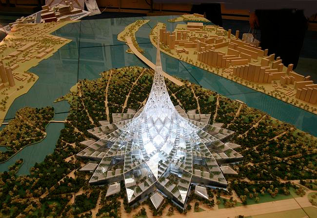 Рис. 7.4.45. Культурно-деловой центр «Хрустальный остров» в Нагатинской пойме. Макет. Архитектор Норман Фостер. 2008 г. Москва, Россия[374]374