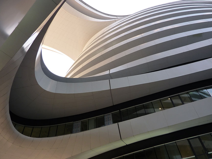 Очертания зданий недавно построенного торгового комплекса Galaxy SOHO в Пекине напоминают изолинии рельефа на топографических к артах. Архитектура стремится стать похожей на элементы ландшафта, проникнуть под поверхность планеты и модернизировать ее изнутри.