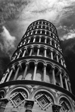 Очень жаль, что башня, часть большого храмового комплекса в Пизе, наклонилась. Привкус аттракциона отвлекает неискушенных туристов от ее божественной красоты. Многочисленные арочки замкнуты в кольца, что снимает проблему бокового распора. Строительство здания было начато 9 августа 1173 г., велось в два этапа, продолжалось почти 200 лет и завершилось в 1360 г.