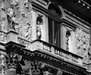 Деталям как будто становится тесно на фасаде, они стремятся «выдавить» друг друга из плоскости стены. Это признак кризиса Возрождения как грандиозного гуманистического проекта. Однако острые грани, оформляющие углы здания, еще свидетельствуют о «послойном» мышлении при построении композиции. До перехода к барокко еще далеко.