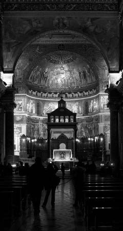 Противоположный пример мы находим в Италии, где строилось много базилик, прекрасных внутри, но снаружи больше похожих на фабричные здания. Внешний вид был не столь важен, как, впрочем, и все, что его окружало, – тварный мир, обреченный погибнуть в день Страшного суда. Зато внутренние помещения, говоря современным языком, представляли собой макет Града небесного, Иерусалима из Апокалипсиса, куда в будущем должны переселиться души праведников (мы еще обсудим это подробнее в пятой главе). Попавший внутрь оказывался в огромных просторных помещениях, залитых светом и богато украшенных. Со временем к такой базилике мог быть приставлен роскошный фасад – если у прихожан появлялись финансовые возможности. Если же положение не позволяло, то голые стены снаружи так и оставались навечно выставленными на всеобщее обозрение, что никого особо не беспокоило.
