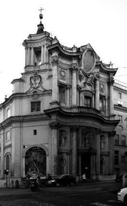 Небольшая церковь на площади Четырех фонтанов в Риме искусно вписана в крохотный участок внутри квартала. Зритель принужден смотреть на здание в ракурсе, с перспективным сокращением. Волнообразные линии фасада затрудняют различение отдельных деталей. Такую композицию трудно воспринять как ясно читаемый объект, зато впечатление она оставляет самое яркое.