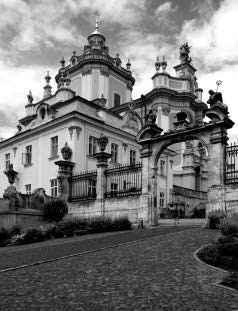 Строительство греко-католического собора Святого Юра во Львове было начато в 1744 г. по проекту Бернарда Меретина, после смерти которого работами руководил Себастьян Фесингер (до 1764). Отделочные работы закончены в 1772 г. На фасаде находятся скульптуры, созданные выдающимся львовским мастером Иоганном Пинзелем; интерьер украсили скульпторы С. Фесингер и М. Филевич, художники Л. Долинский и Ю. Радивиловский. Еще один пример барочного мышления. Неприятие острых граней, волнообразный изгиб фасада. Можно также сказать, что авторы не хотели показывать четкую границу, линию, где кончается здание и начинается небо.
