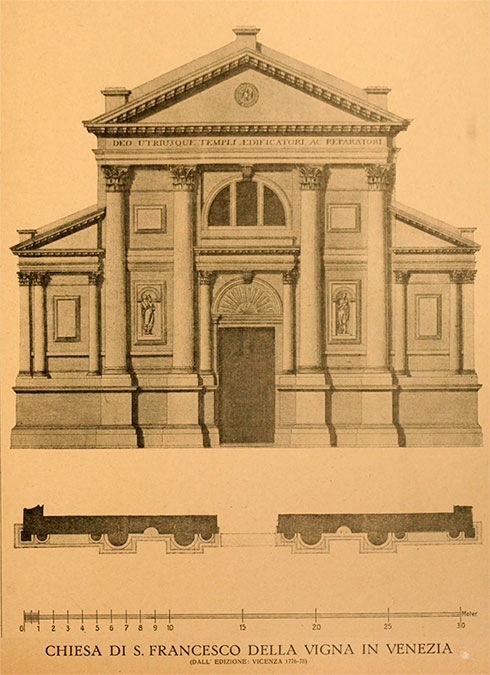 Таким образом, предлагая применить в церкви Сан-Франческо делла Винья простейшие пропорции (конечно, не только в очертаниях нефа, но и во всем объеме здания), Франческо Джорджи рассматривал храм как музыкальный инструмент, играя на котором архитектор добивается консонанса с прекрасной музыкой Вселенной. Эти же соотношения легко заметить и в других произведениях эпохи Возрождения, в частности у Палладио.