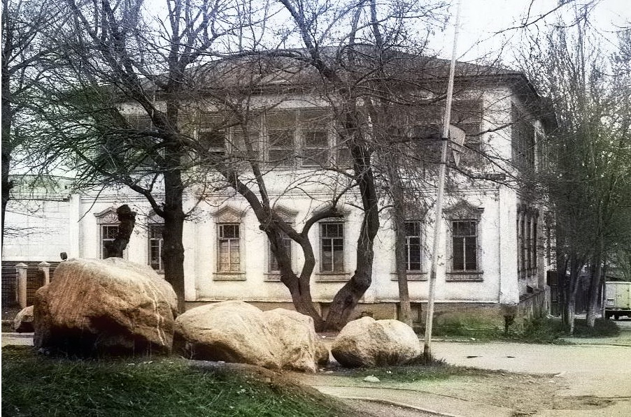 Ещё один дом на берегу речки, почему-то с побелкой в розовый цвет. Это не дом, скорее барак, в котором жили рабочие с мельзавода. Опять фотографирую. Потом, думаю, все эти фотографии я помещу в интернете со своими комментариями. Ещё год назад зарегистрировался на сайте, где выставляют фотографии старого города, а люди делятся своими воспоминаниями о тех или иных изменениях, произошедших в городе за последние 30-40 лет. Теперь и у меня появляется материал для воспоминаний. До этого приходилось искать фотографии города прошлого века в интернете, а сейчас такие фотографии, причём оригинальные имеются у меня.
