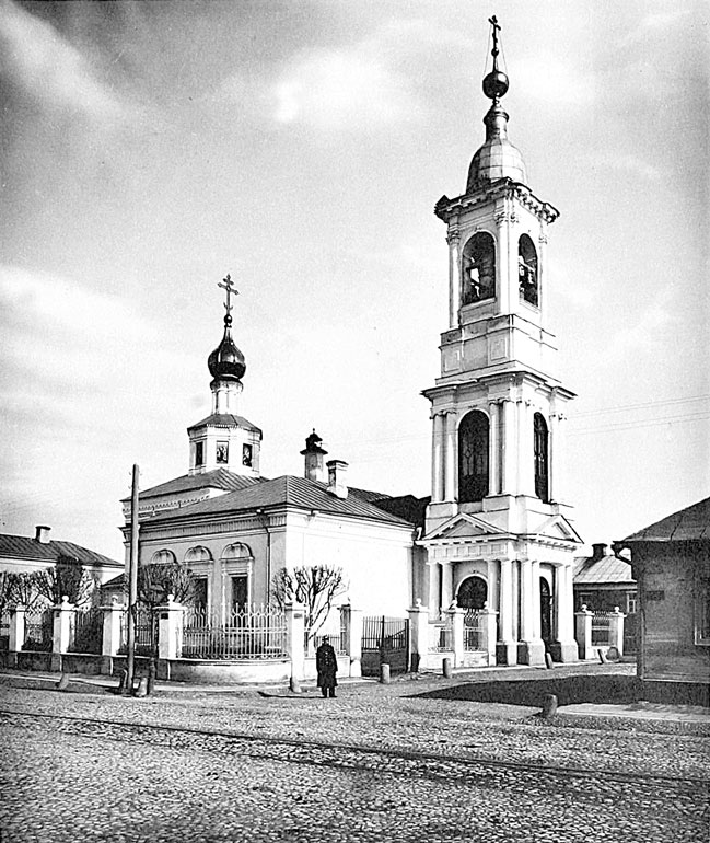 В 1771 г. возвели красивую, стройную колокольню. В советское время все здесь было снесено: в протоколе Моссовета от 10 апреля 1932 г. было записано, что он просит президиум ВЦИКа «закрыть и снести» эту церковь, как «находящуюся на участке, отведенном для жилищного строительства». Снесли и тогда же начали строить представительный жилой дом (1935 г., архитектор Л.М. Поляков): где жили коммунисты, расстрелянные впоследствии своими товарищами, заместитель наркома лесной промышленности Л.И. Коган, секретарь Московского комитета большевиков Г.А. Братановский и др., а также писательница М.С. Шагинян, архитекторы В.А. Щуко и В.Г. Гельфрейх, полярник И.Д. Папанин, революционерка В. Фигнер и потомки Толстого и Пушкина. Перед этим домом поставлен памятник (2002 г., скульптор Г. Франгулян) поэту, исполнителю песен, писателю Б.Ш. Окуджаве, жившему рядом, в доме № 43.