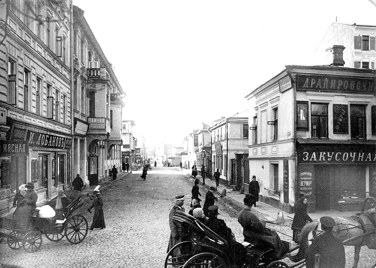 Здание, стоящее островком между Большим Афанасьевским и Филипповским переулками (№ 8), выстроено на земле соседней церкви Афанасия и Кирилла и принадлежало ее причту (1914 г., М.Д. Холмогоров). На первом этаже дома находились булочная Титова (слева) и молочная Чичкина (справа), а ближе к церкви – квартира священника, а на втором этаже церковно-приходская школа.