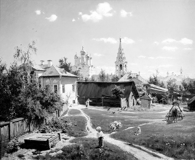 Церковь Спаса Преображения, изображенная на картине В.Д. Поленова «Московский дворик»