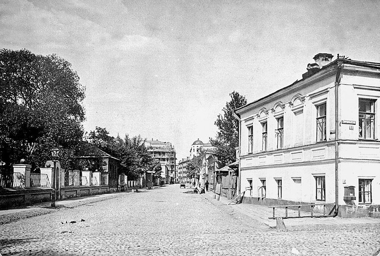 Дом (№ 13) построен в 1864 г. купцом второй гильдии В.П. Быковым и через три года надстроен. В нем в 1900–1913 гг. помещалась редакция журнала «Вопросы философии и психологии», который был призван, по идее его основателя Н.А. Грота, «насаждать философскую культуру среди русского общества и способствовать тем самым делу создания самостоятельной русской философии». Редакторами его были С.Н. Трубецкой и Л.М. Лопатин.