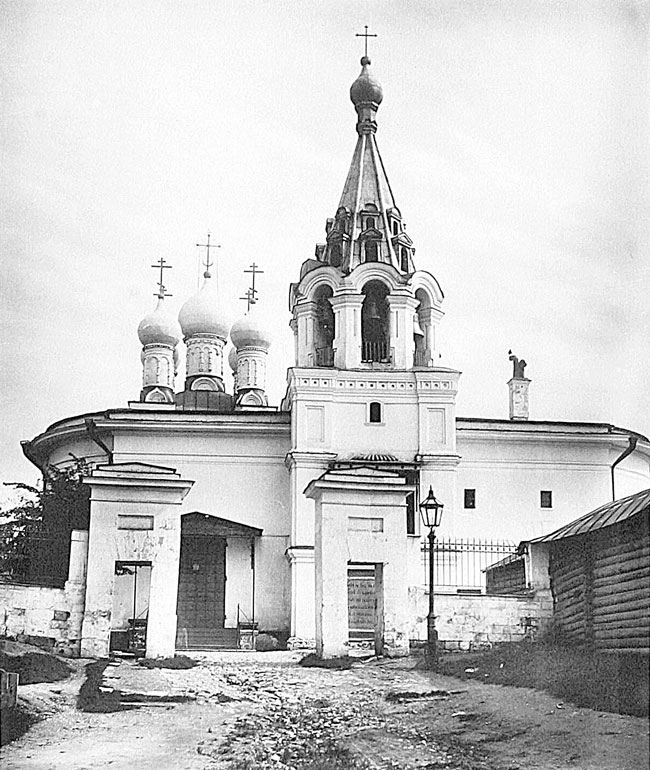 В советское время сначала сломали колокольню, стоявшую отдельно от церкви, на красной линии Тверской, а в 1933 г. и саму церковь.