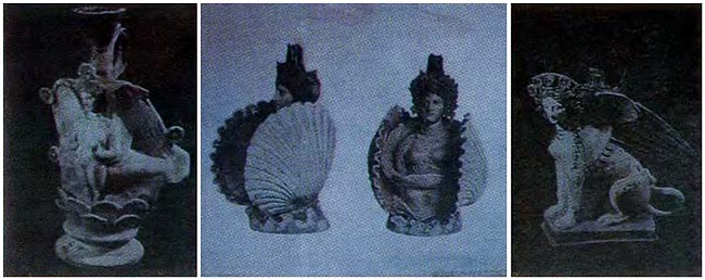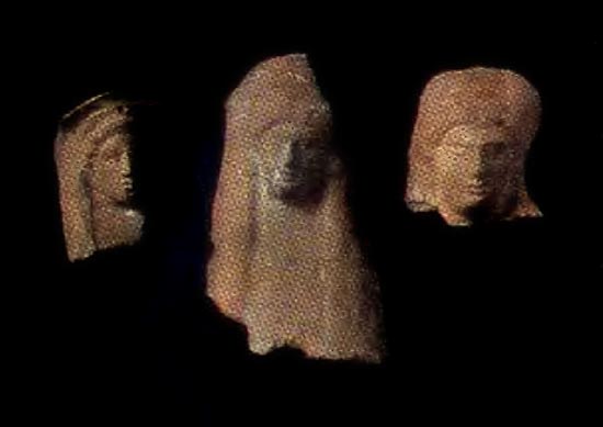 Фанагория. Фигурные сосуды в виде Сирены, Афродиты и Сфинкса. Конец V в. до н. э. Глина, краски.