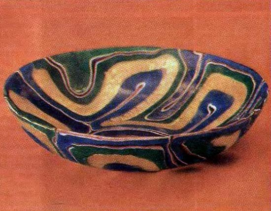 Горгиппия. Склеп 1975 г. Чаша полихромная. Стекло с прокладкой золотой фольги.