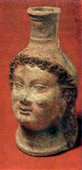 Пантикапей. Фигурная ваза в виде головы человека. Глина, краски.
