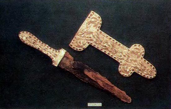 Горгиппия. Склеп 1975 г. Короткий меч и ножны. Золото, гранаты, бирюза.
